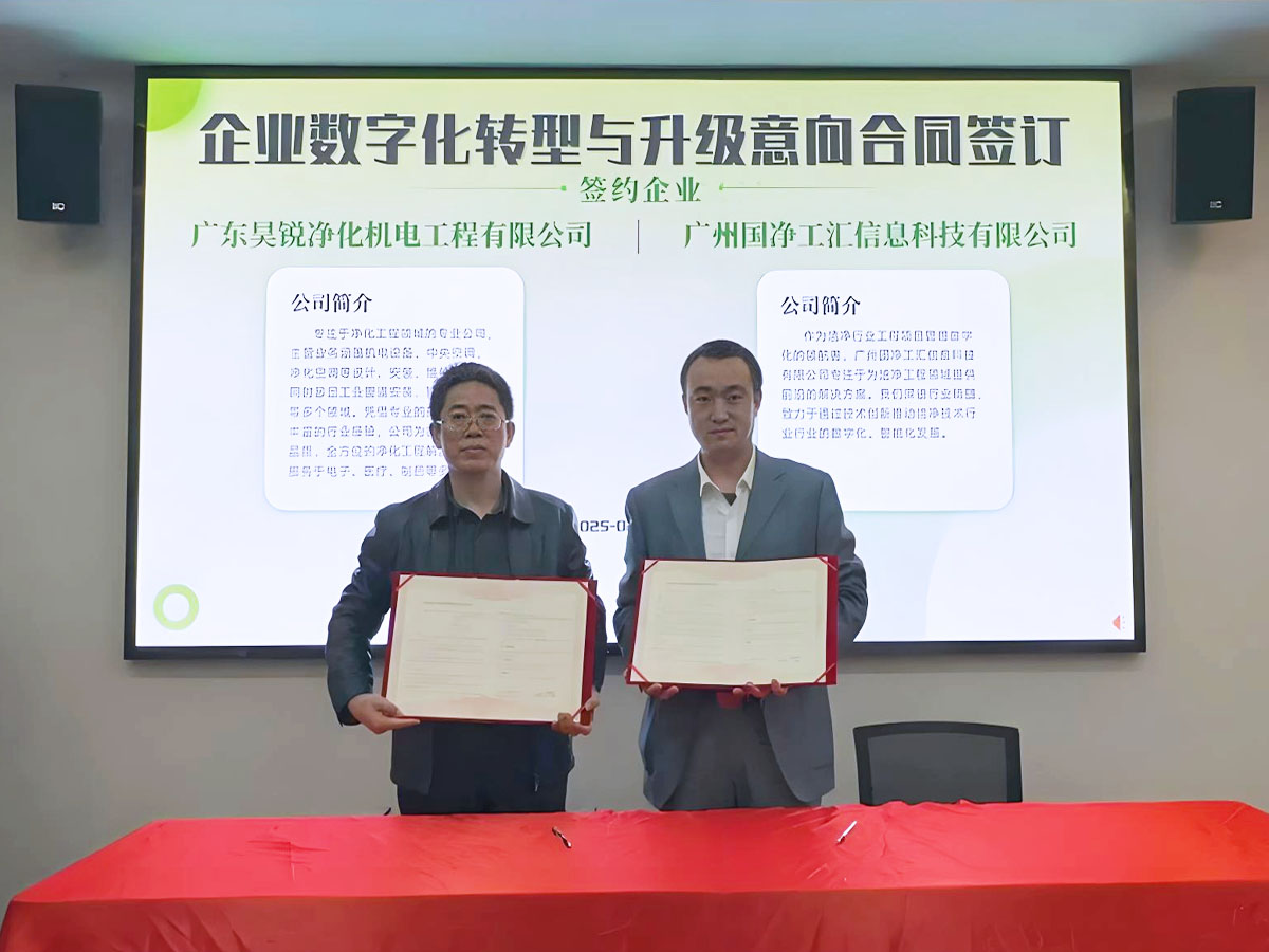 研討會期間,張勁松總經(jīng)理簽訂了潔凈技術(shù)行業(yè)數(shù)字化轉(zhuǎn)型合作意向書,未來昊銳凈化公司將繼續(xù)深化數(shù)字化轉(zhuǎn)型,為客戶提供更智能、更高效的凈化工程整體解決方案。中國潔凈技術(shù)行業(yè)協(xié)會秘書長張仲杰:"廣東昊銳的數(shù)字化轉(zhuǎn)型實踐為行業(yè)提供了寶貴經(jīng)驗,期待更多企業(yè)加入數(shù)字化生態(tài)建設(shè)。"
